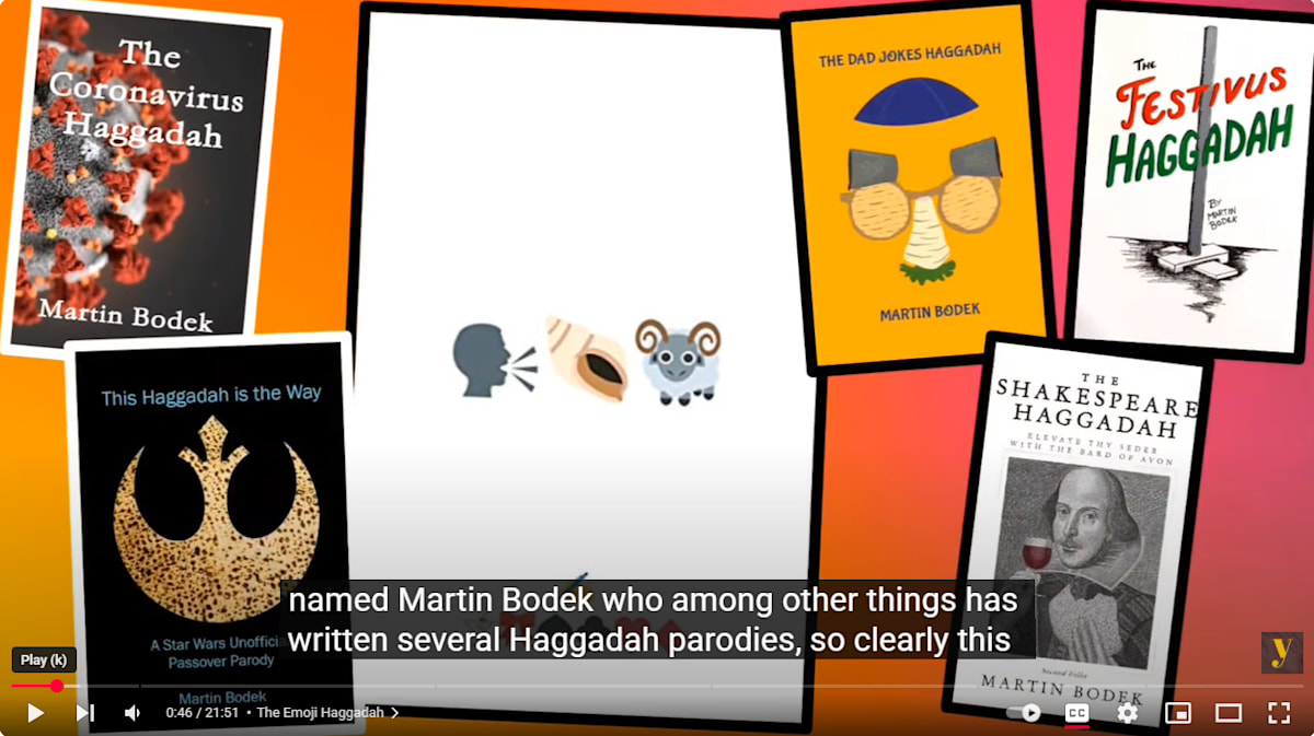 The what? Yes. This is neither clip, nor reel, nor segment. Nay, this is a full-on exploration and explanation of The Emoji Haggadah, and it feels, looks, plays, and presents as a documentary, so I'm calling it that, and I couldn't be more honored.